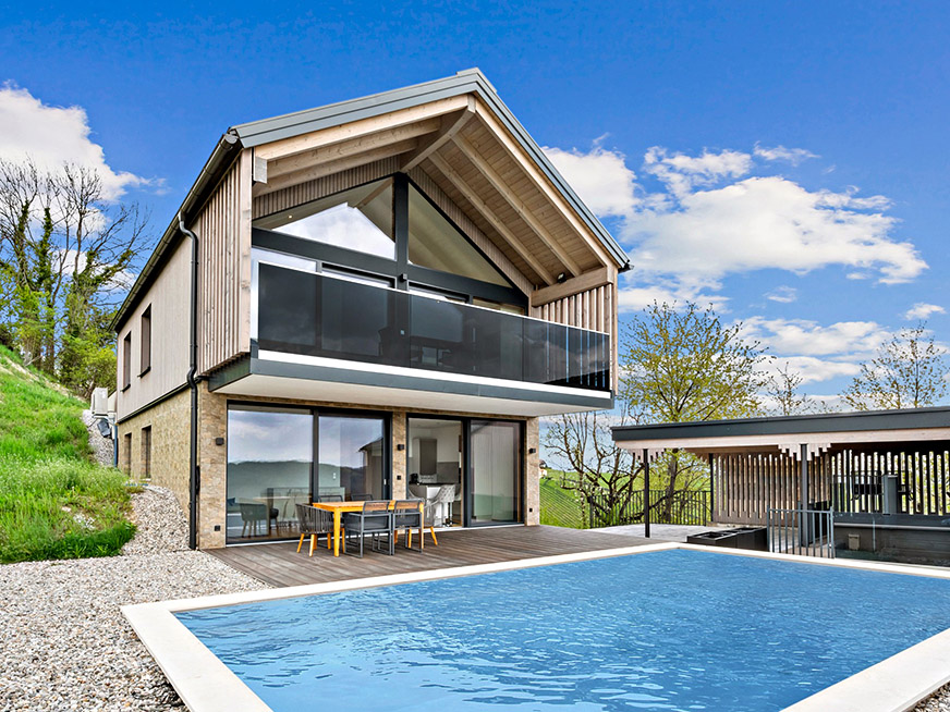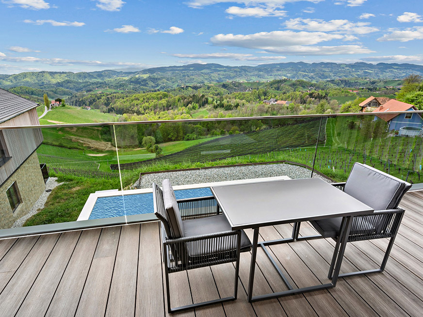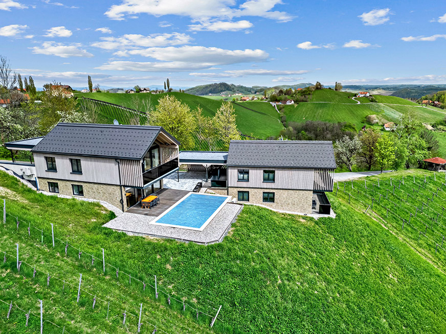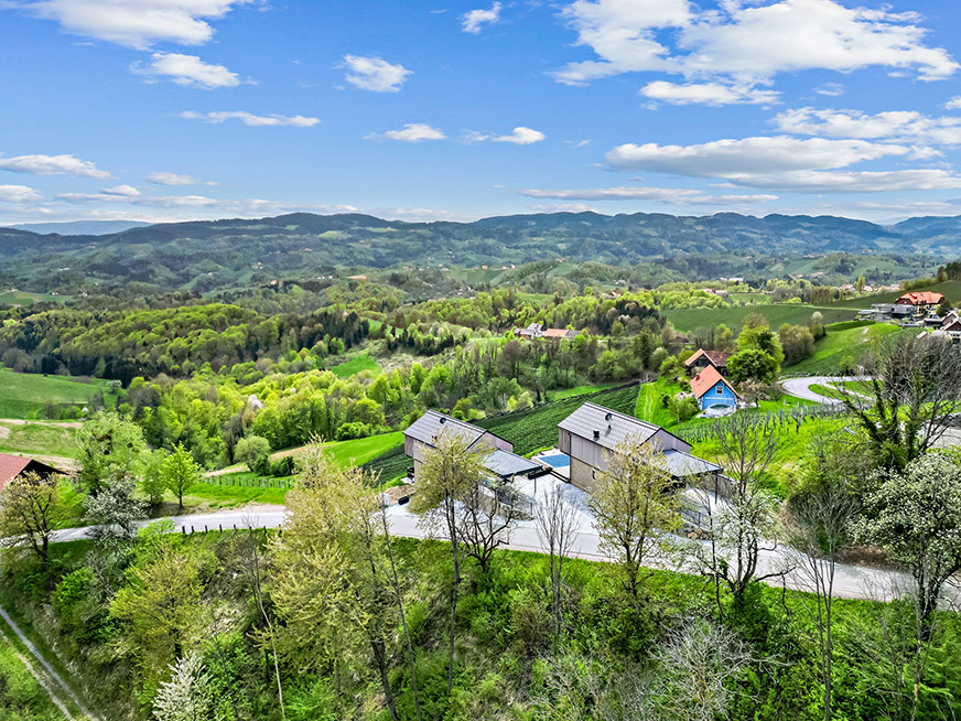 Die Chalets Max & Moritz befinden sich in der schönsten Lage der Südsteiermark! Genießen Sie die unbeschreibliche Aussicht und die wundervolle Ruhe. Die neu erbauten (März 2023) Ferienwohnungen bieten Ihnen Unterkünfte im modernen Stil, mit je 75 m², 2 Schlafzimmern, Balkon oder Terrasse, mit einem Flachbild-Sat-TV, einem eigenen Bad mit Dusche und einer voll ausgestatteten Küche. Parkplätze stehen kostenlos zur Verfügung.